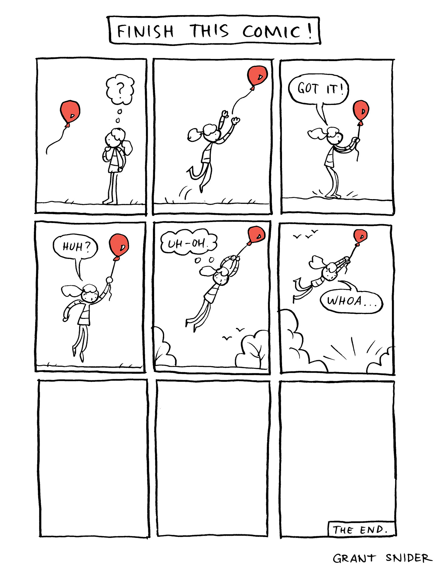 If your comic is a single page, try to create resolution in the final panel. This may be a joke, a question, a narrow escape. Or it may be a portal that opens to the next page, leading the next part of the story. A panel is built on lines. A page is built on panels. A chapter is built on pages. A story is built on chapters. An endlessly unraveling tale with an extended fictional universe and backstory is built one story at a time.