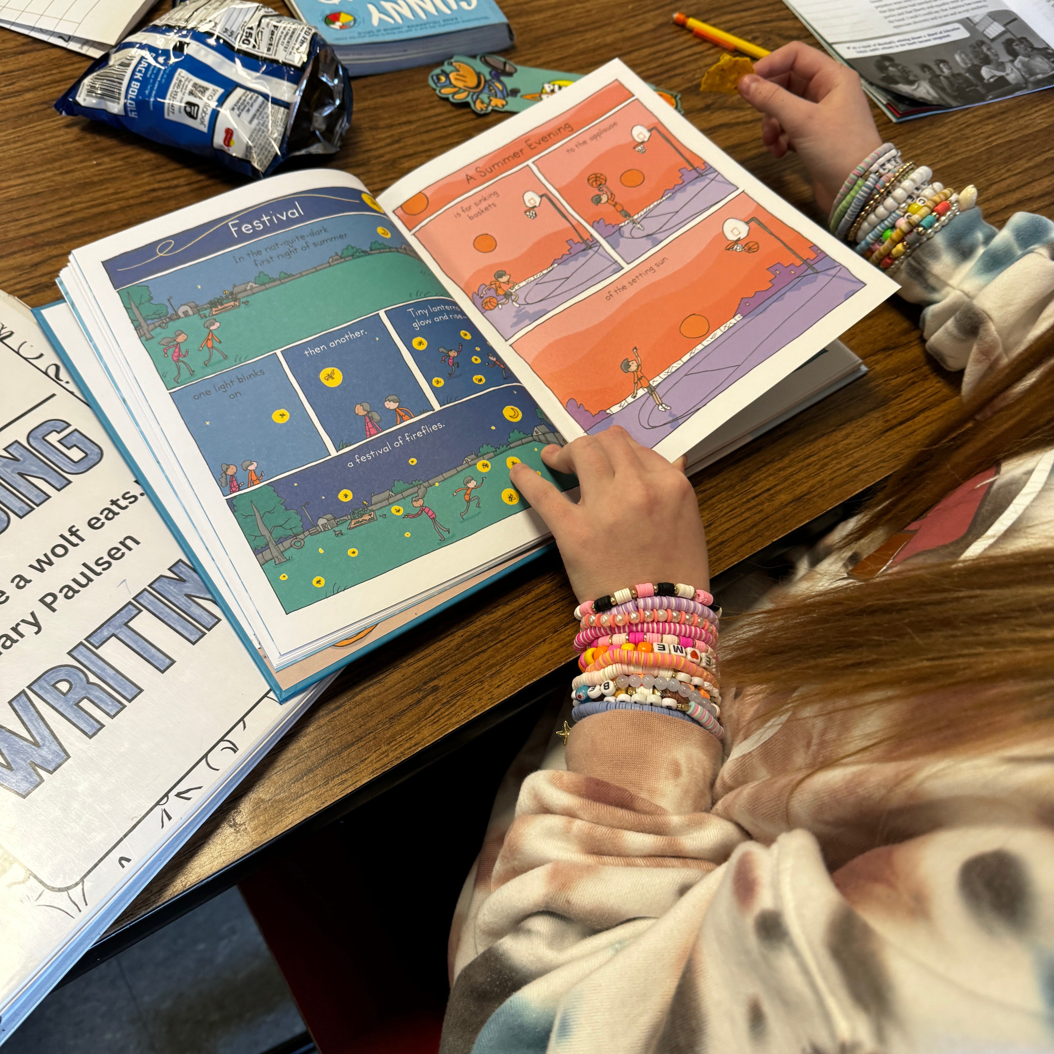 Colby Sharp recently featured POETRY COMICS on his excellent kid lit Substack, Sharp Read. I love his story of sharing it with his fifth-grade students, and I might have to steal his quote to use on the back cover:
