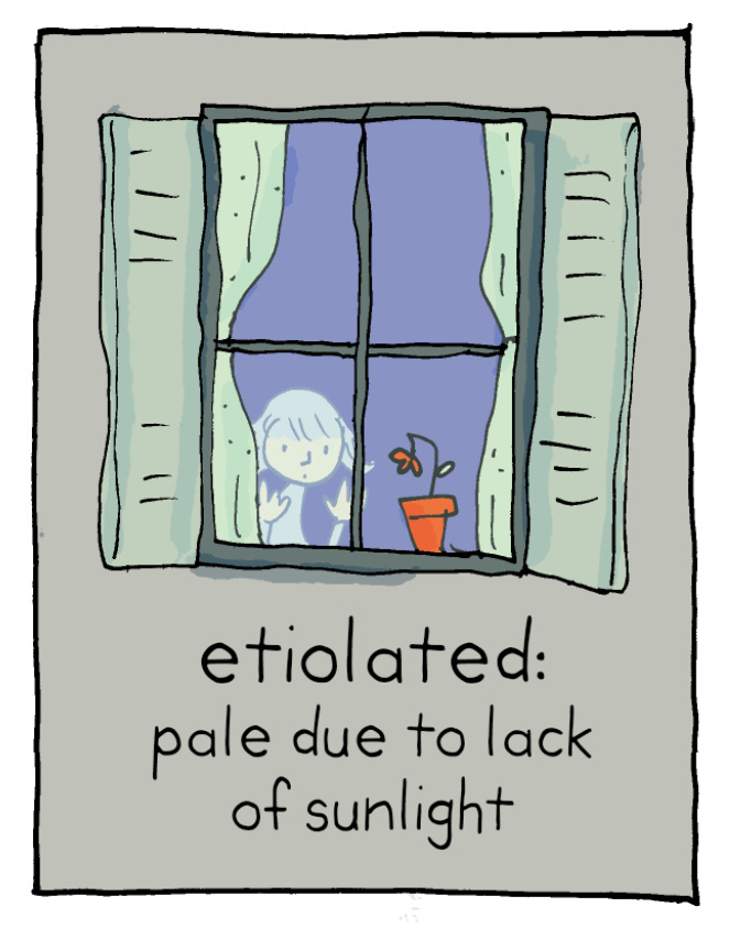 Etiolated (adj)